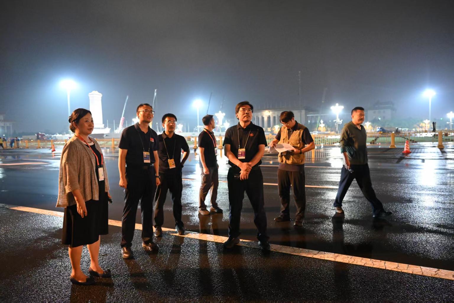 这只是调度工作的一个小小缩影。田园称调度工作虽然“看不见”,却“很烧脑”。不论人还是物,转运工作是一个全链条,任何一个环节出错都有可能影响接下来的步骤,因此方案制定需要考虑方方面面,实现精准调度,确保万无一失。“比如临时观礼台钢模块搭建只有51小时,既要短时间内保质保量完成,同时还要避免扰民,这给工程建设带来巨大挑战。我们协调了广场旁一片场地作为临时中转点,暂存部分钢模块,保证施工期间能够不间断运输,同时降低了对市民的影响。”